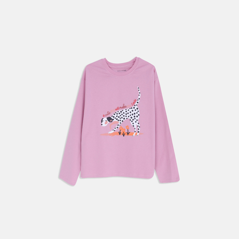تي شيرت كاجوال مريح وأنيق مصنوع من القطن 100% فائق النعومة. يتميز بطباعة جرافيكية عصرية للكلاب، وأكمام طويلة مثالية للطقس المعتدل. متوفر بلونين جميلين