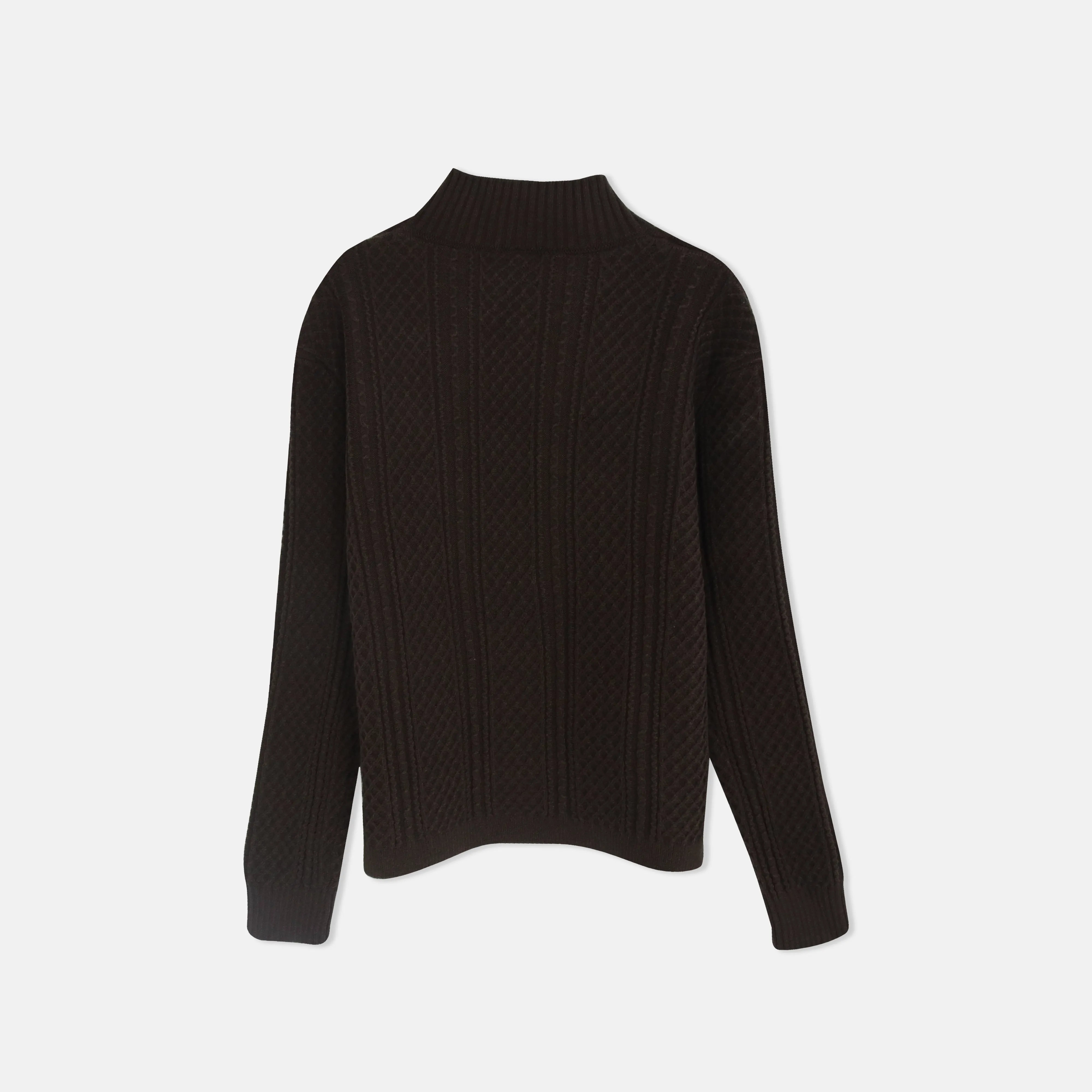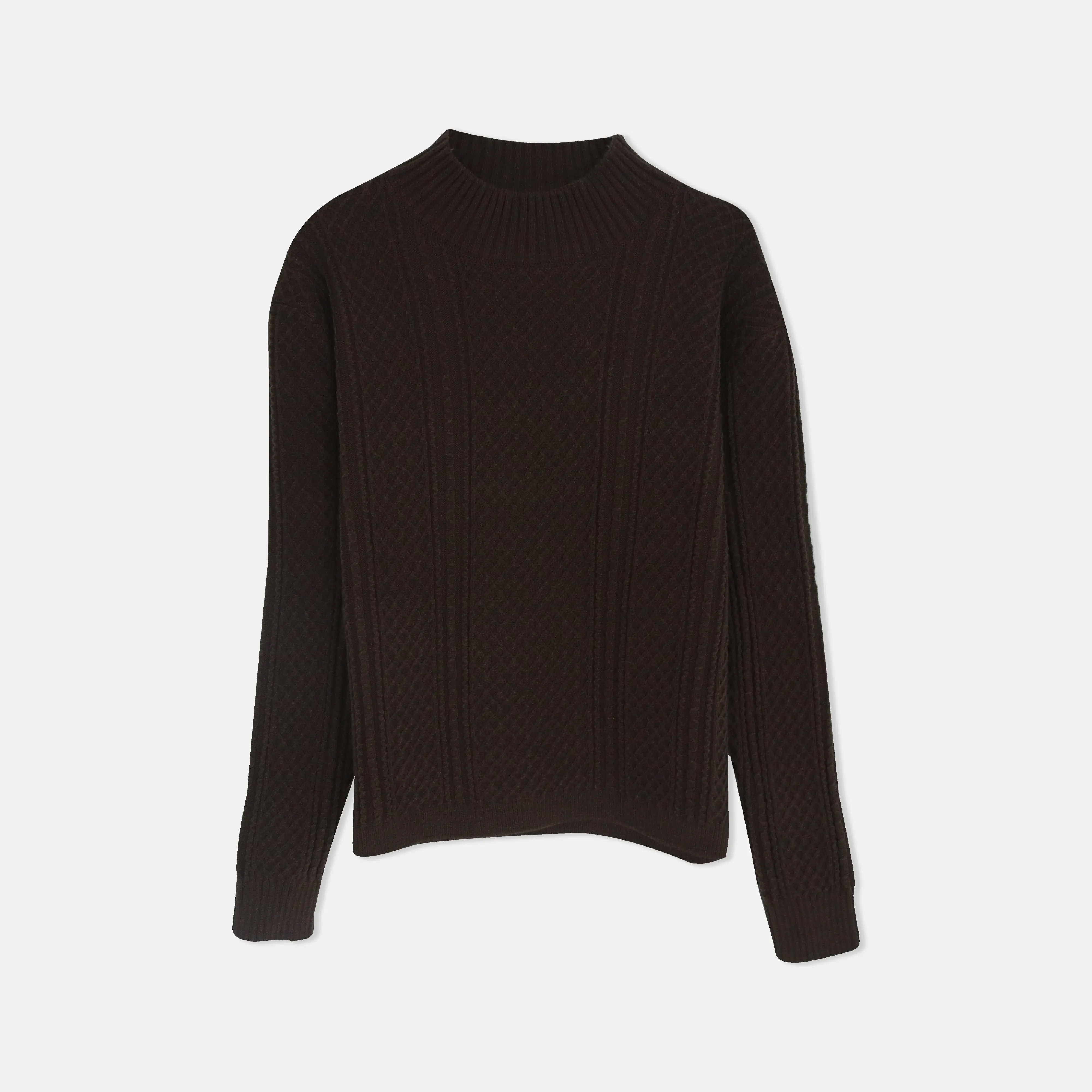 احتضني الدفء والأناقة مع sweater الكبل-نيت النسائي برقبة مرتفعة. يتميز هذا القطعة الكلاسيكية بتصميم الكبل-نيت الجميل ورقبة مريحة تمنحك دفئاً راقي