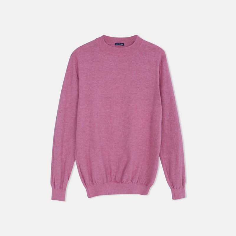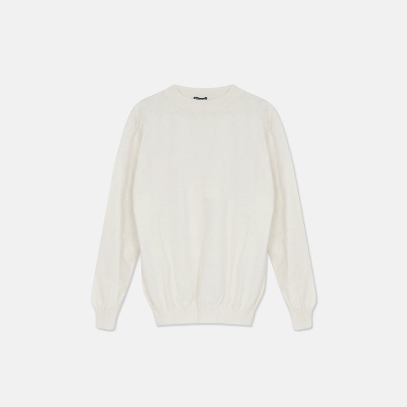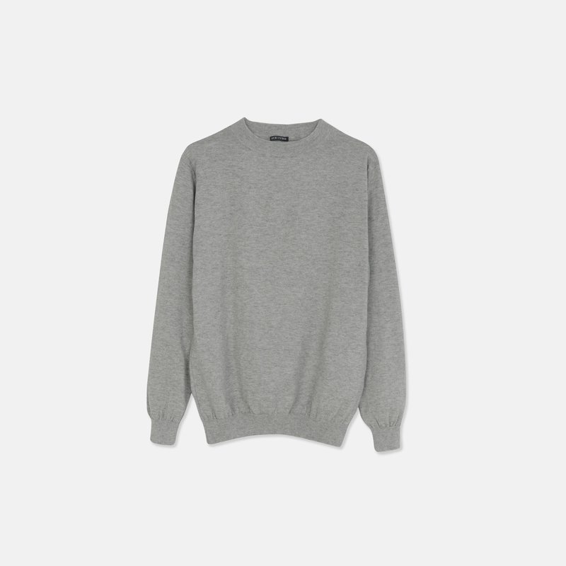 كنزة رجالية بياقة دائرية كلاسيكية، مصنوعة من مزيج ناعم ودافئ من القطن والصوف بنسبة 75% قطن و25% صوف