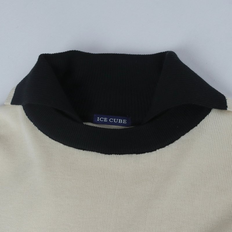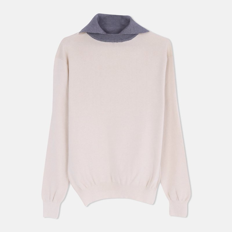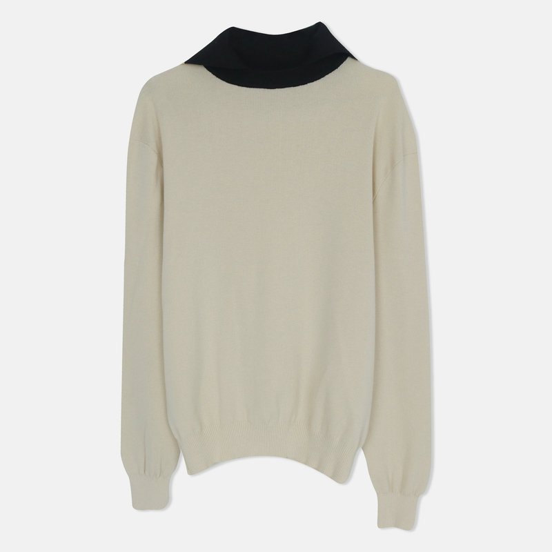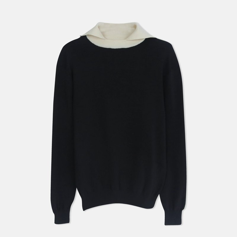 كنزة بياقة عالية وتصميم بياقة بلون متباين لإطلالة عصرية وملفتة. مصنوعة من مزيج ناعم من الأكريليك، القطن، والفيسكوز، تمنحك الدفء والراحة طوال اليوم.