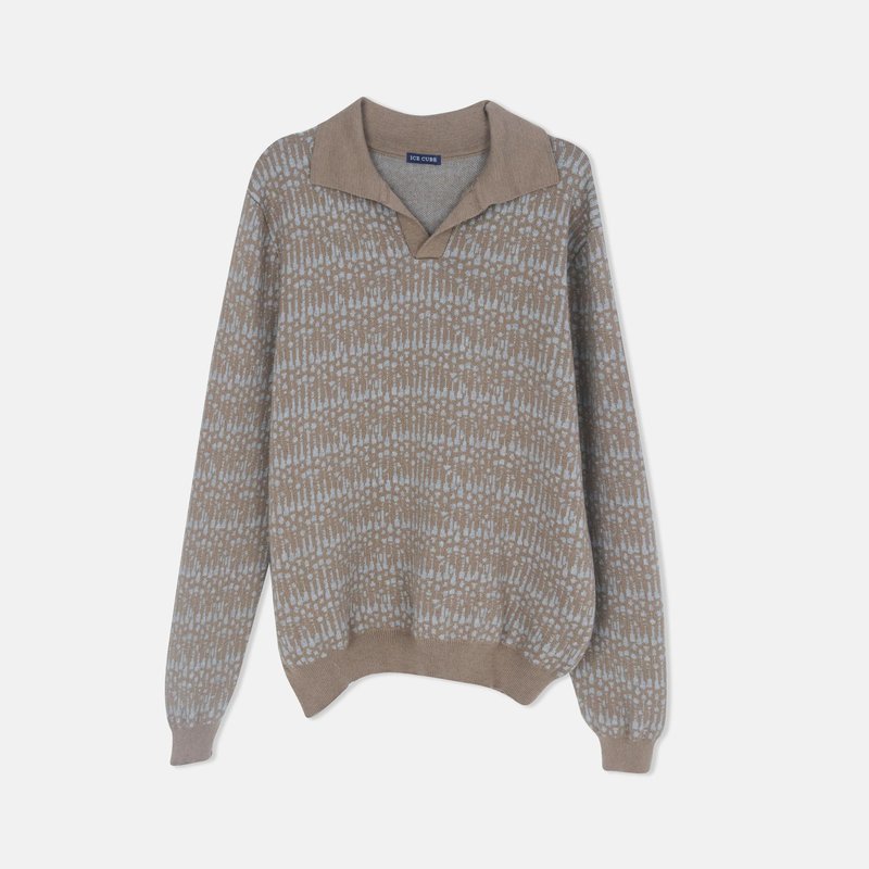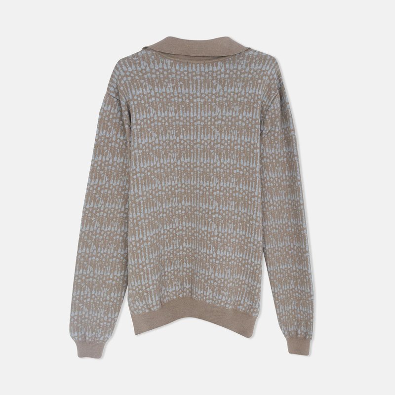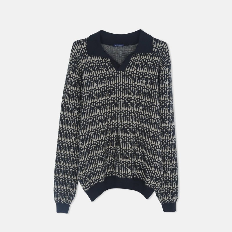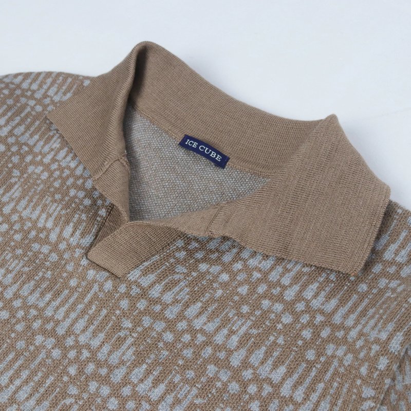 كنزة رجالية بياقة وتصميم بنقشة عصرية، مصنوعة من مزيج فاخر من المودال، القطن، الفيسكوز، النايلون وBBT. توفر دفئًا وأناقة في آنٍ واحد.