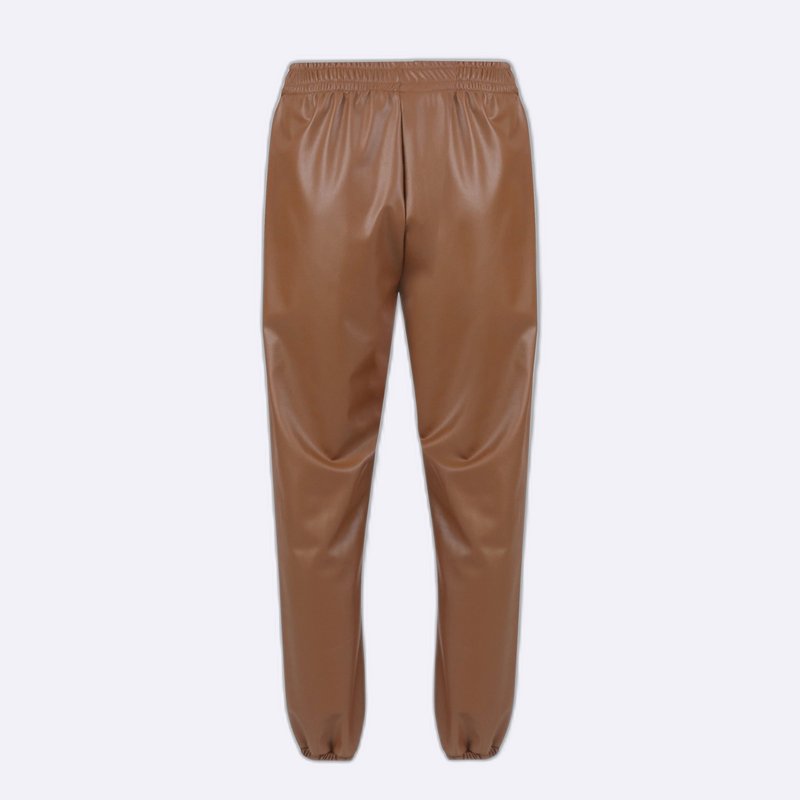 ضيفي لمسة جريئة إلى إطلالتك مع بنطال جوغر نسائي بتصميم ضيق من الجلد الصناعي بلون أسود وعسلي. مصنوع من مزيج مرن من البوليستر والبولي يوريثان والإسباندكس لراحة وأناقة طوال اليوم