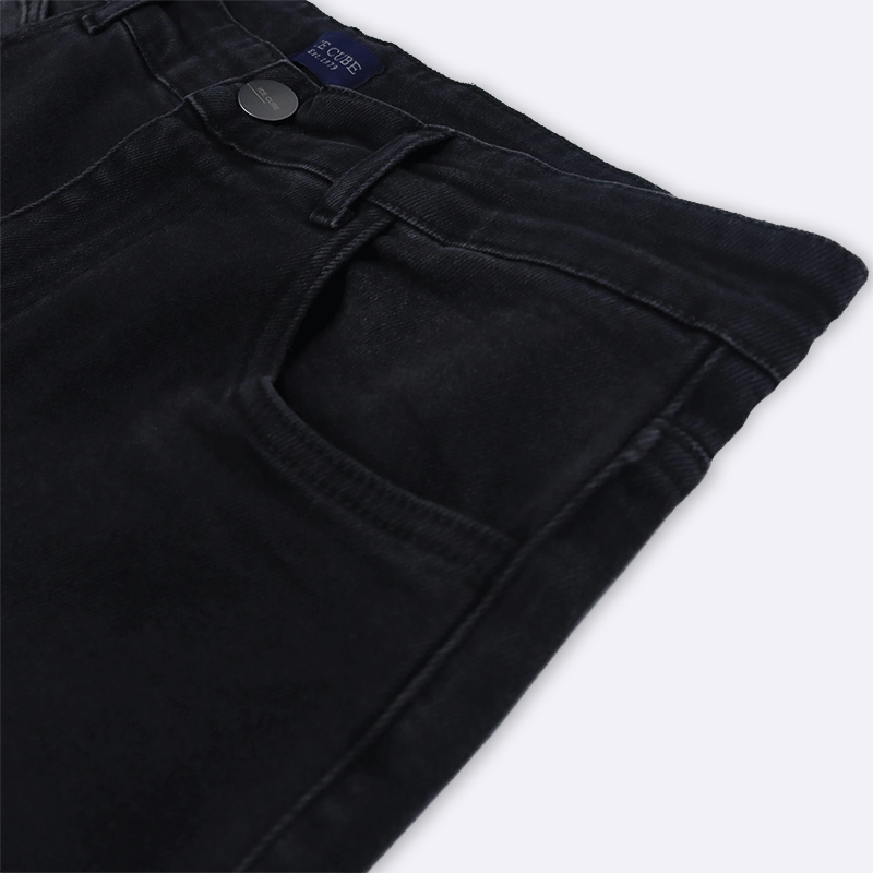 جينز رجالي أسود مصنوع من 99% قطن و1% إيلاستين لراحة وتمدد مثالي