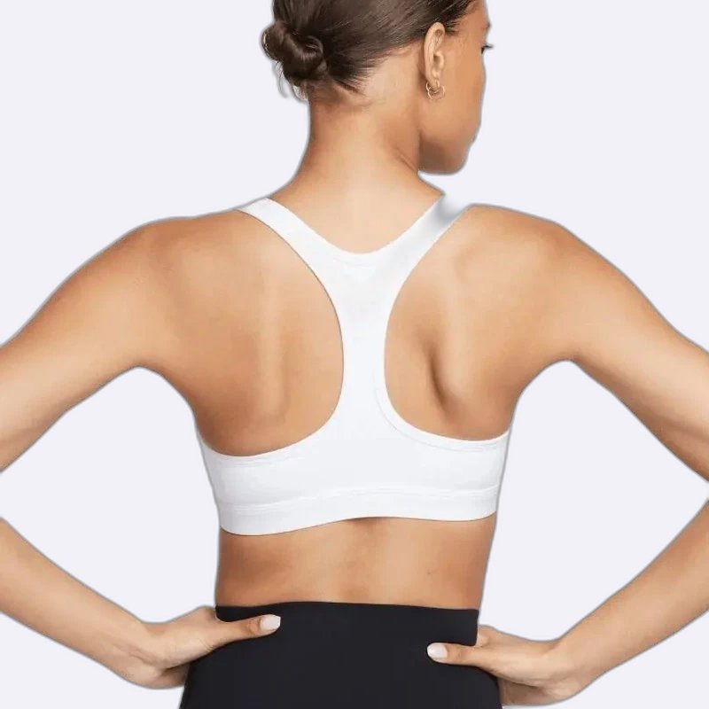 حمالة صدر نسائية من نايكي بتصميم Swoosh خفيف الدعم، مثالية لليوغا والمشي والأنشطة الخفيفة. قماش ناعم ومرن بتقنية Dri-FIT لراحة وانتعاش يدومان. اللون: أبيض.