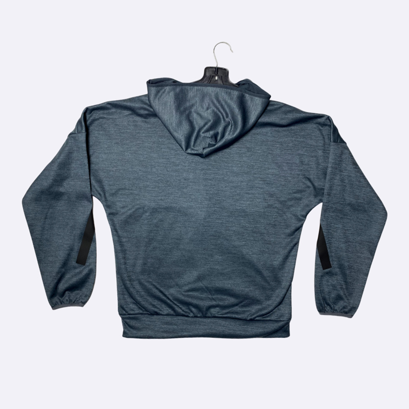 بدلة رياضية رجالية مريحة من قطعتين، تتميز بخامة الميلانج (مختلطة الأنسجة) وجاكيت بغطاء رأس وسحاب كامل وجيب أمامي كانجارو. يتميز البنطلون بتصميم مريح وخصر مطاطي، مع تفاصيل مطبوعة على الجاكيت والبنطلون.