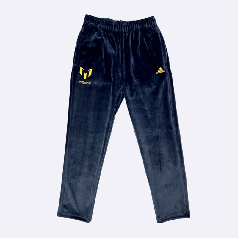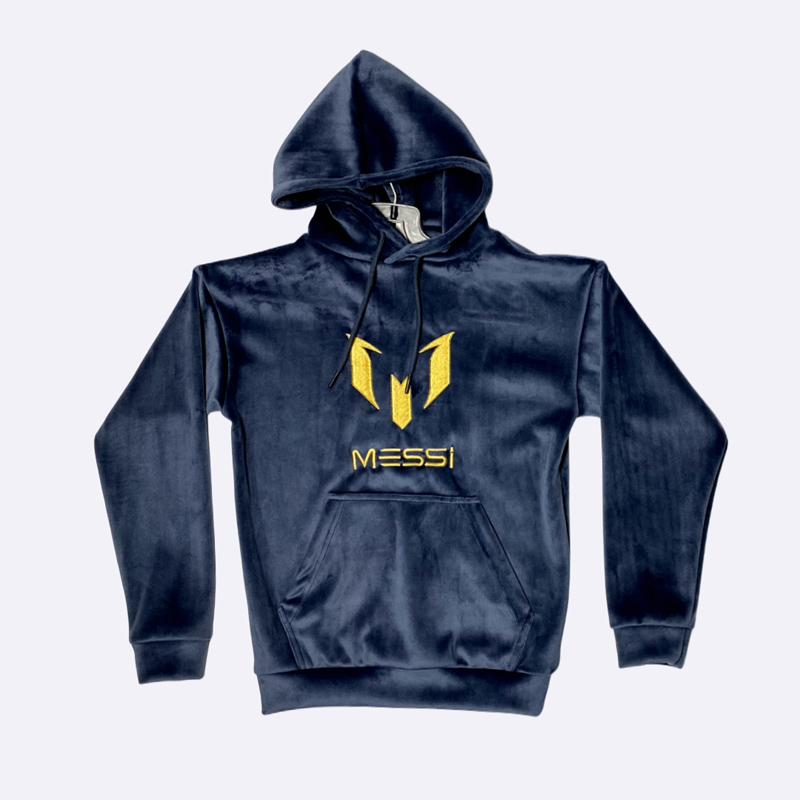 طقم رياضي رجالي قطيفة (?يلور) باللون الكحلي الداكن، يحمل شعار وأسم اللاعب ليونيل ميسي الذهبي، مثالي للتدريب أو اللبس الكاجوال المريح.