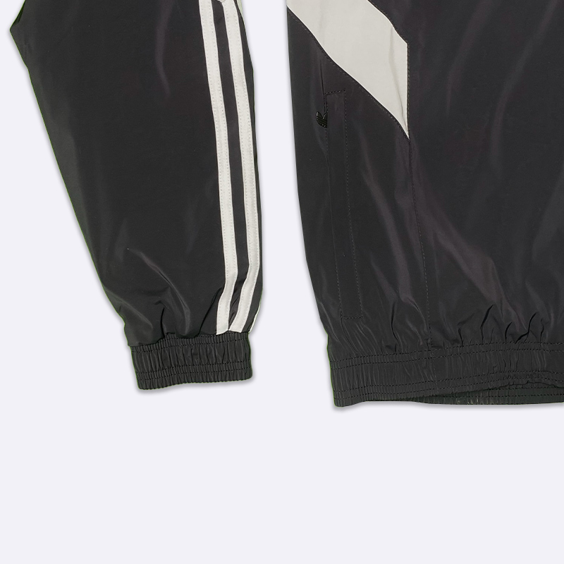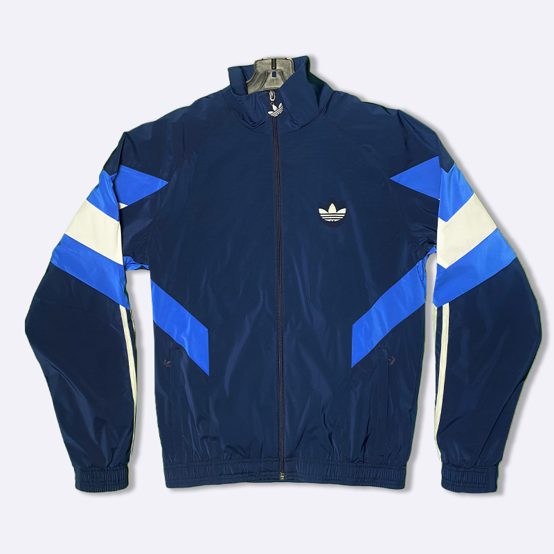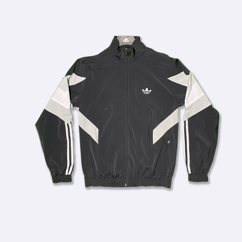 طقم رياضي رجالي مريح بتصميم كلاسيكي عصري، يجمع بين الجاكيت والبنطال مع تفاصيل الخطوط الأيقونية.