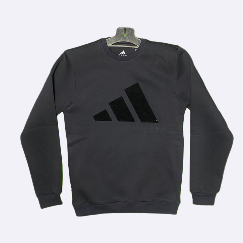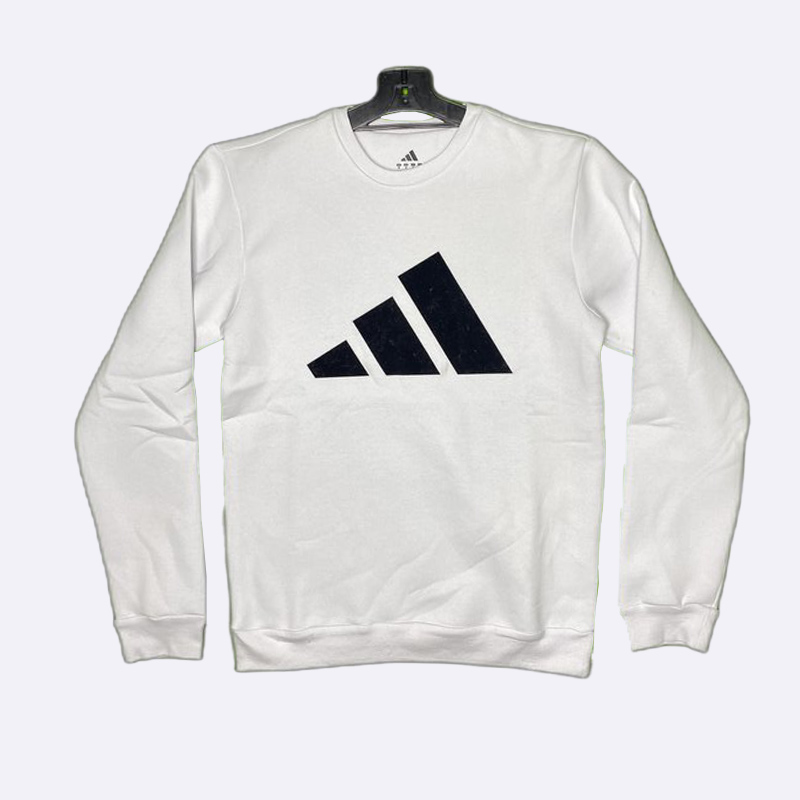 قميص رياضي مريح بأكمام طويلة ورقبة دائرية، يتميز بشعار أديداس البارز في المنتصف.
