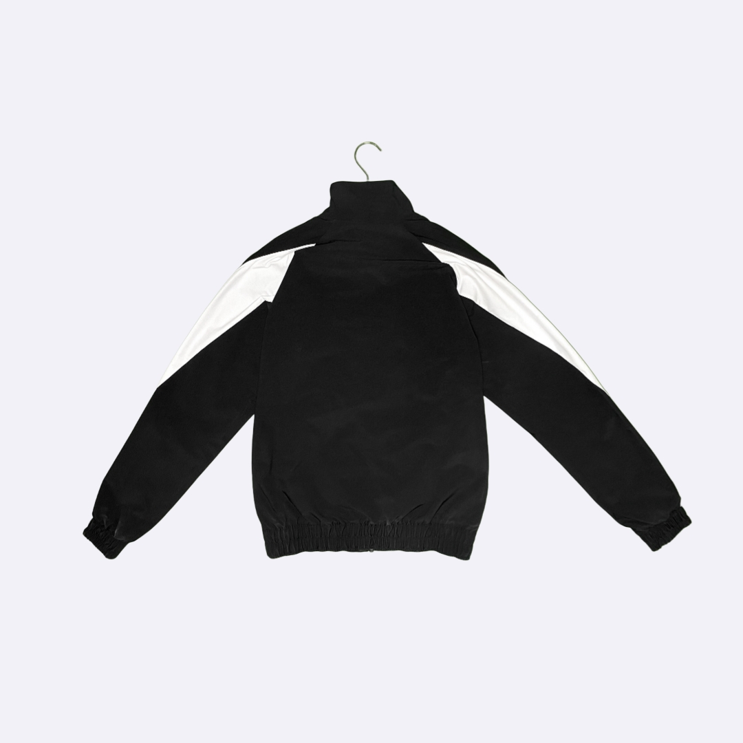 تألق بإطلالة رياضية أنيقة مع هذا الطقم المكون من جاكيت وبنطلون باللونين الأسود والأبيض. تصميم عصري ومريح يمنحك حرية الحركة.