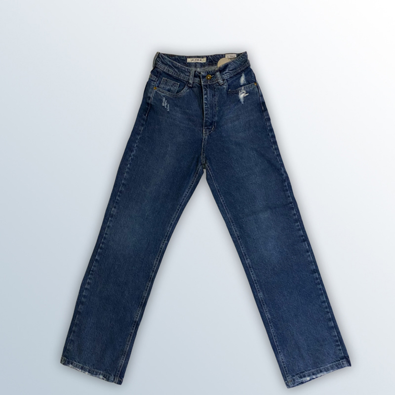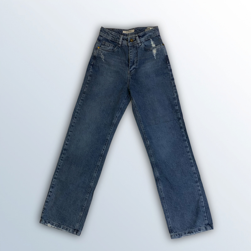 بنطلون جينز نسائي بقصة "ستريت" (Straight-leg)، مصنوع من القطن بنسبة 100%.
