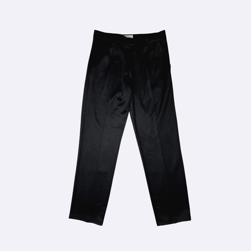 بنطلون نسائي بخصر عالٍ وقصة أرجل واسعة، مصنوع من قماش مطاطي.