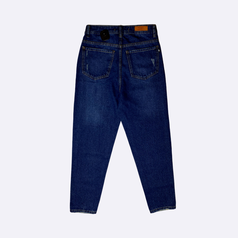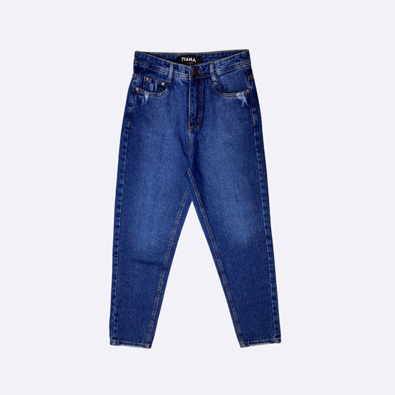 بنطلون جينز نسائي بقصة موم وخصر مرتفع، بتصميم كلاسيكي ومريح.