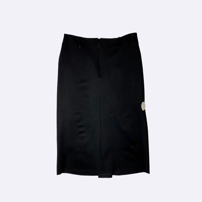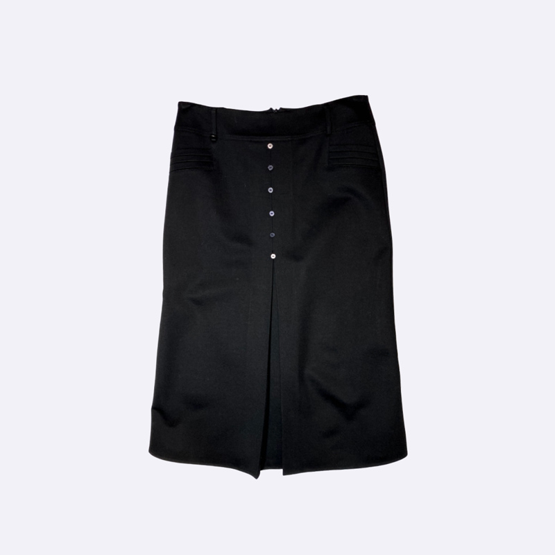 تنورة نسائية ميدي ضيقة (Pencil Skirt) تتميز بصف من الأزرار الأمامية المركزية وشق أمامي، مثالية للمظهر الأنيق والرسمي.