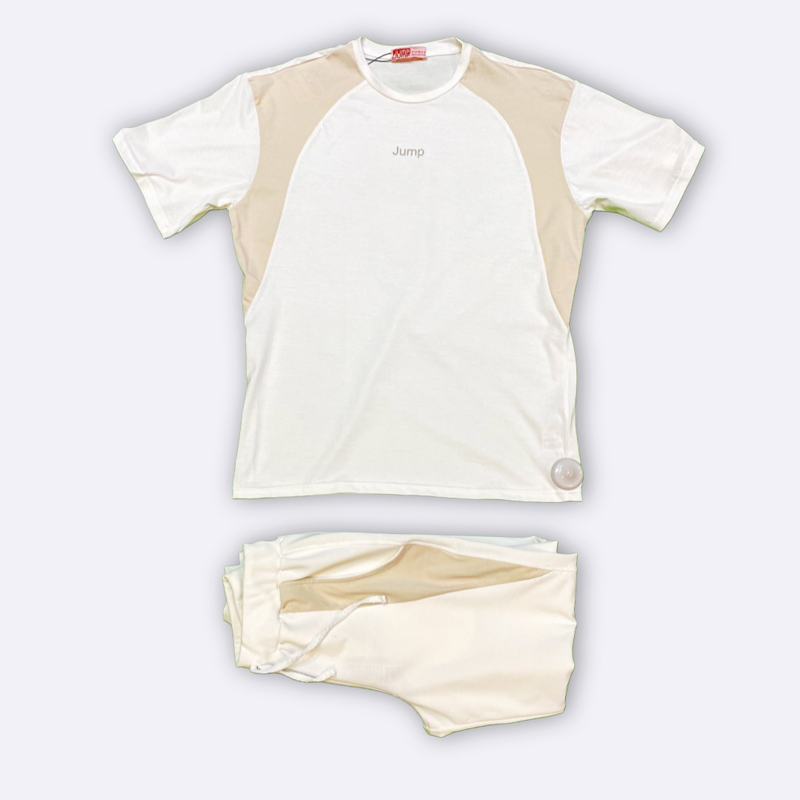 طقم رياضي عملي مكوّن من قميص بأكمام راجلان مع بنطال، مناسب للتمارين.