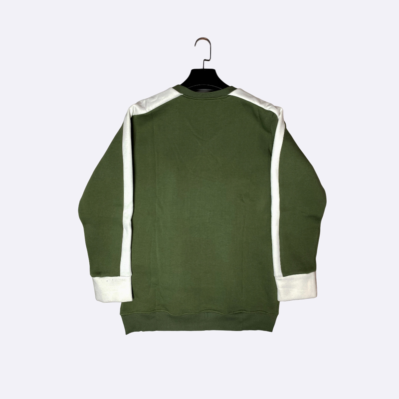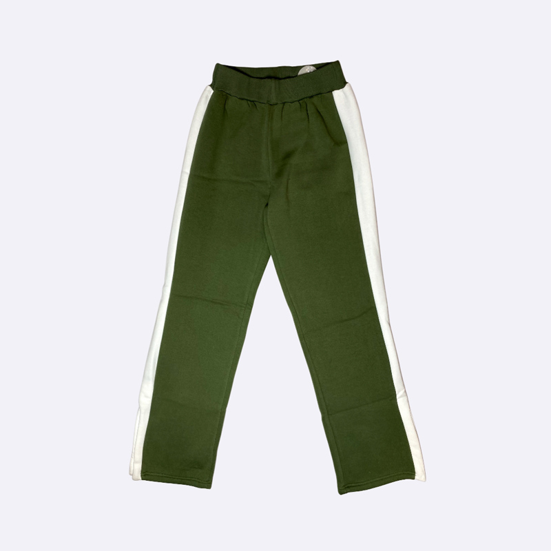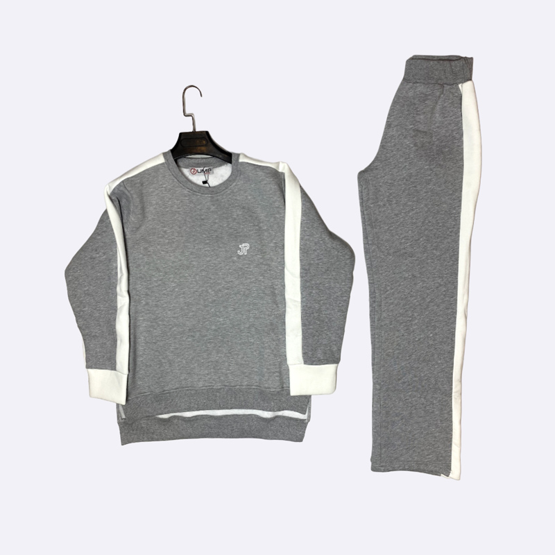 طقم رياضي نسائي مكون من سويت شيرت بياقة مستديرة وأكمام مخططة وسروال رياضي مريح بخصر مطاطي وخط جانبي متباين.