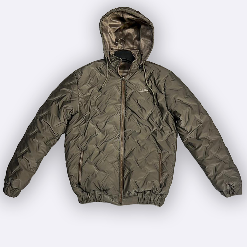جاكيت شتوي رجالي دبل فيس، وجه مخملي ناعم ووجه خارجي مقاوم للماء. مبطن لتوفير الدفء ومزوّد بقبعة لحماية أفضل في البرد. تصميم عملي وأنيق مناسب للاستخدام اليومي.