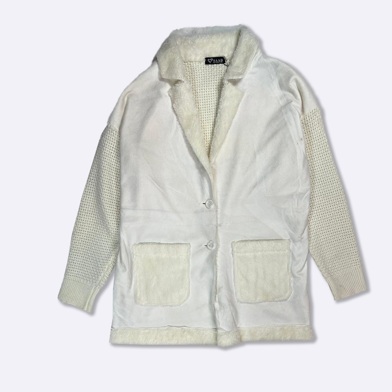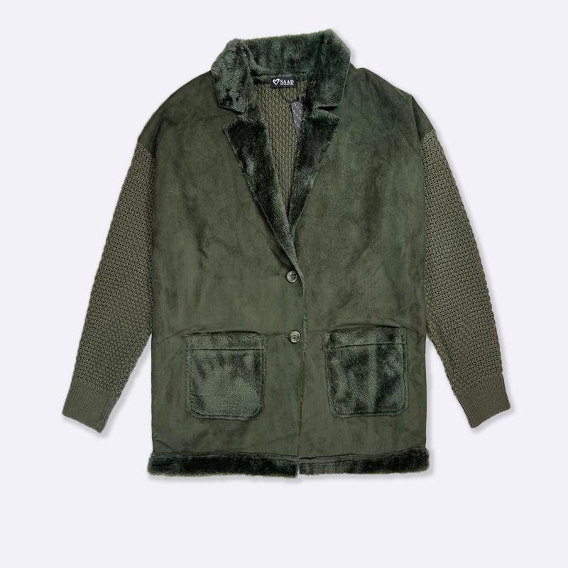 أضيفي لمسة من الأناقة إلى خزانة ملابسك مع هذا البليزر الأنيق. يتميز بأكمام محبوكة مريحة وحواف من الفرو الصناعي الفاخر، مما يجعله مثالياً لإطلالة عصرية دافئة.