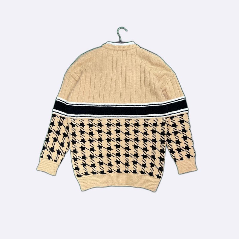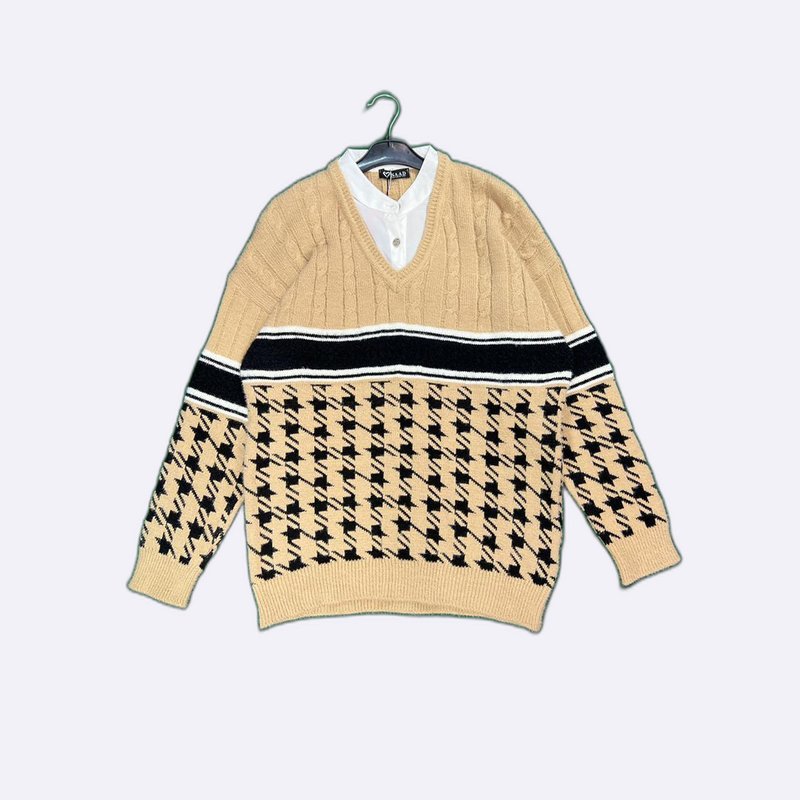 Houndstooth Knit Sweater with Detachable Collar