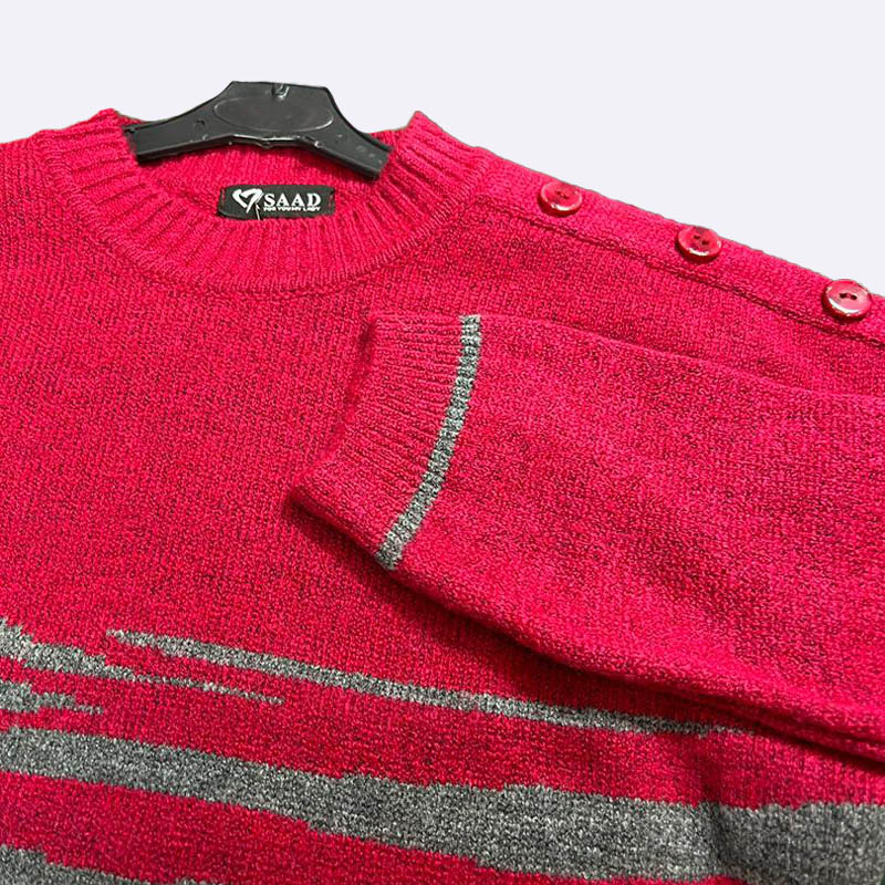 تألقي بكنزة صوفية أنيقة ومريحة بتصميم عصري. تتميز بخطوط جذابة وأزرار أنيقة على الكتف، مما يضفي لمسة فريدة على إطلالتك.