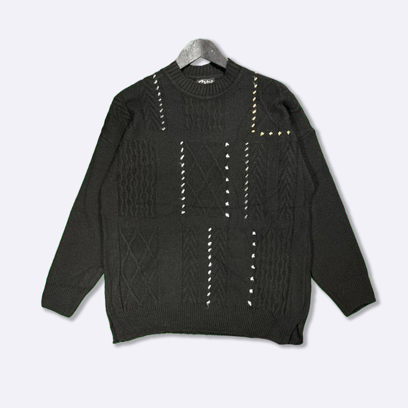 تألقي بإطلالة عصرية مع هذه الكنزة التريكو الأنيقة. تصميم فريد مزين بتفاصيل دقيقة تضفي لمسة جمالية مميزة. مثالية لأيامك الكاجوال.