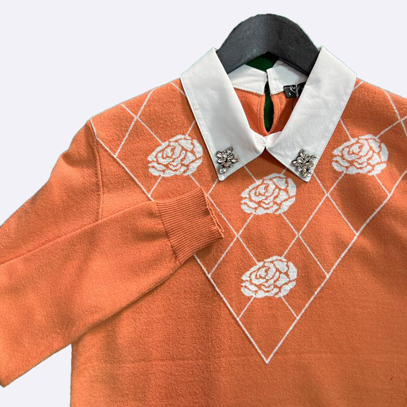 تألقي بإطلالة عصرية مع هذا التوب المحبوك الأنيق. يتميز بنقشة ماسية جذابة وتفاصيل وردية رقيقة وياقة أنيقة، مما يجعله خيارًا مثاليًا لكل يوم.