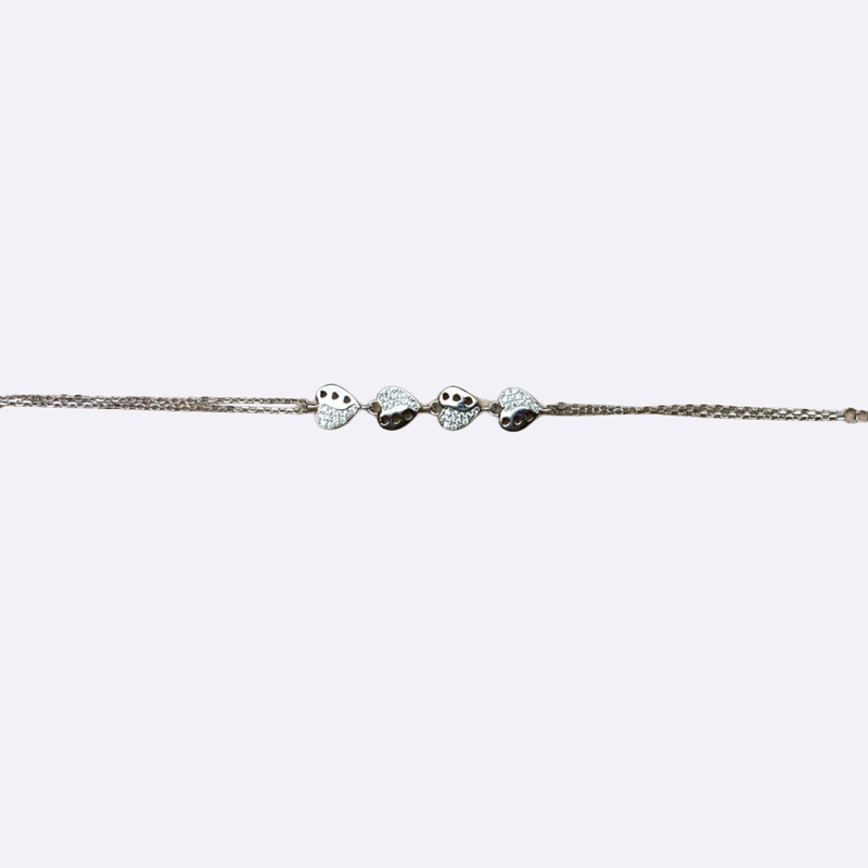Silver Bracelet with Pave Heart Charms