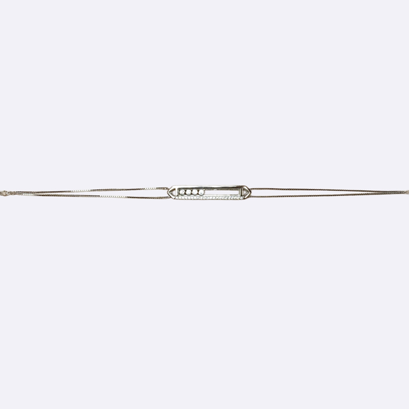 سوار فضي بسلسلة مزدوجة، يتميز بقطعة مستطيلة شفافة بداخلها أربع خرزات صغيرة متحركة.فضة عيار 925