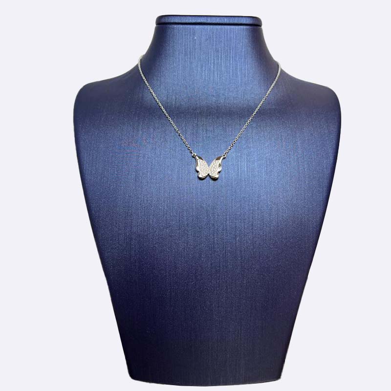 Silver Butterfly Necklace with Clear Stones