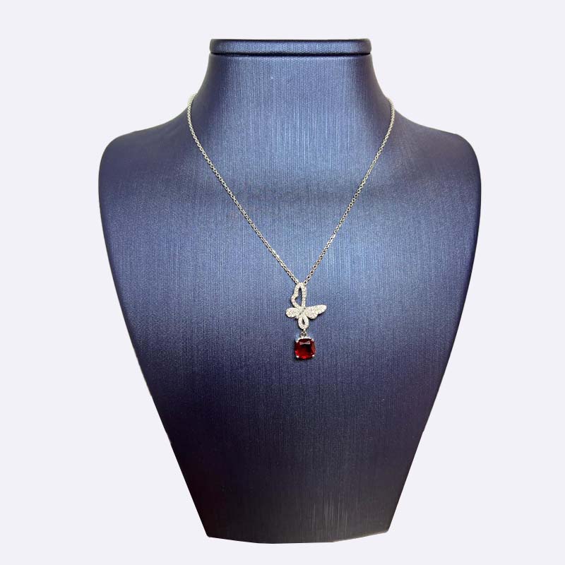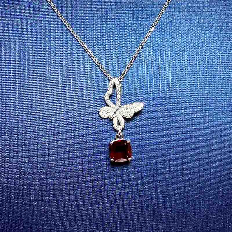 قلادة نسائية من فضة أصلية بتصميم فراشة أنثوي وكيوت، باللون الفضي مع حجر أحمر متدلّي يضيف لمسة جريئة وناعمة بنفس الوقت. قطعة خفيفة وعصرية، سهلة التنسيق ومناسبة للاستخدام اليومي ولإطلالة شبابية لافتة.