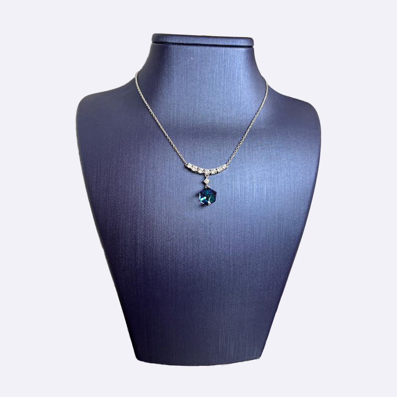 تألقي بجمال اللون الأزرق مع هذا العقد الأنيق. تصميم فريد يضفي لمسة من الرقي على إطلالتك.