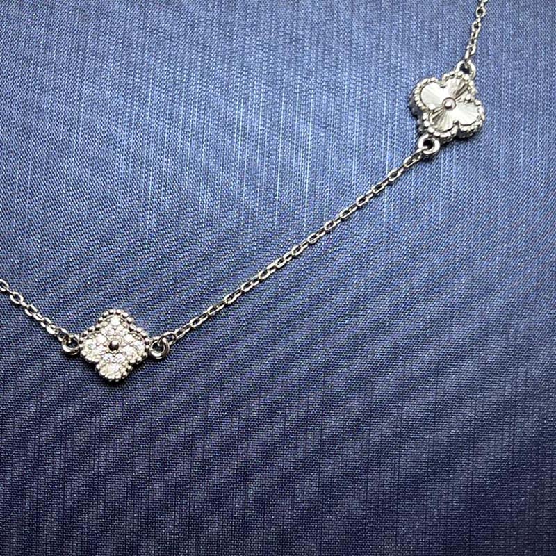 أضيفي لمسة من الأناقة والجمال إلى إطلالتك مع هذا العقد الفضي الرائع بتصميم البرسيم المحظوظ. تصميم فريد يضفي عليكِ سحراً خاصاً في كل مناسبة.
