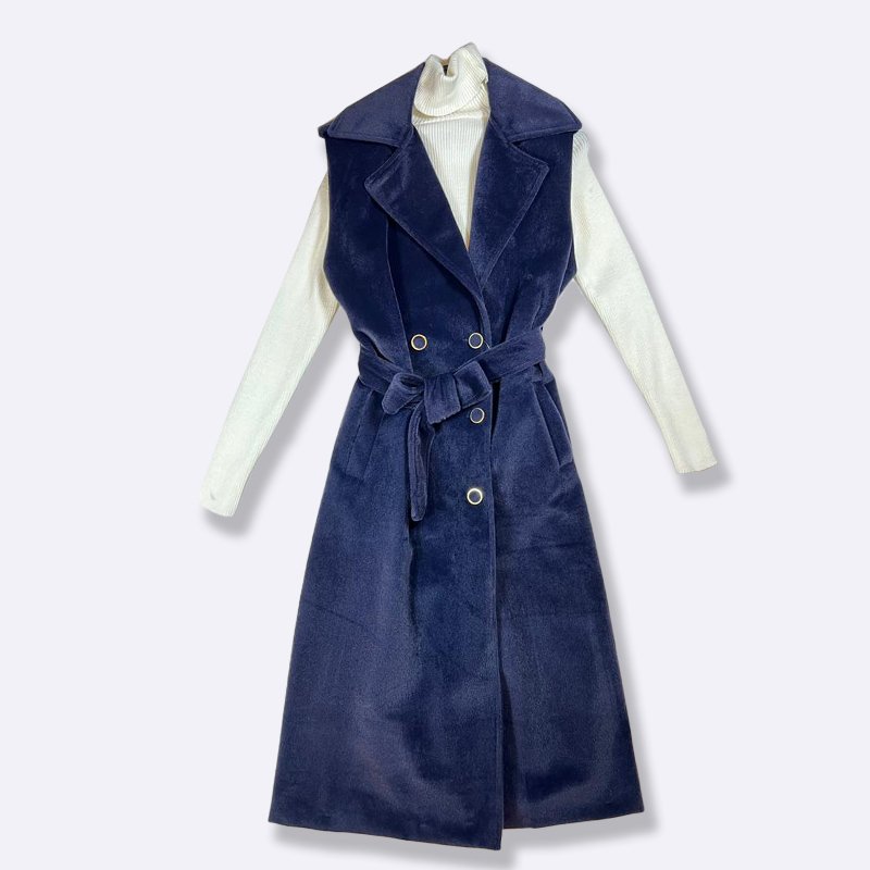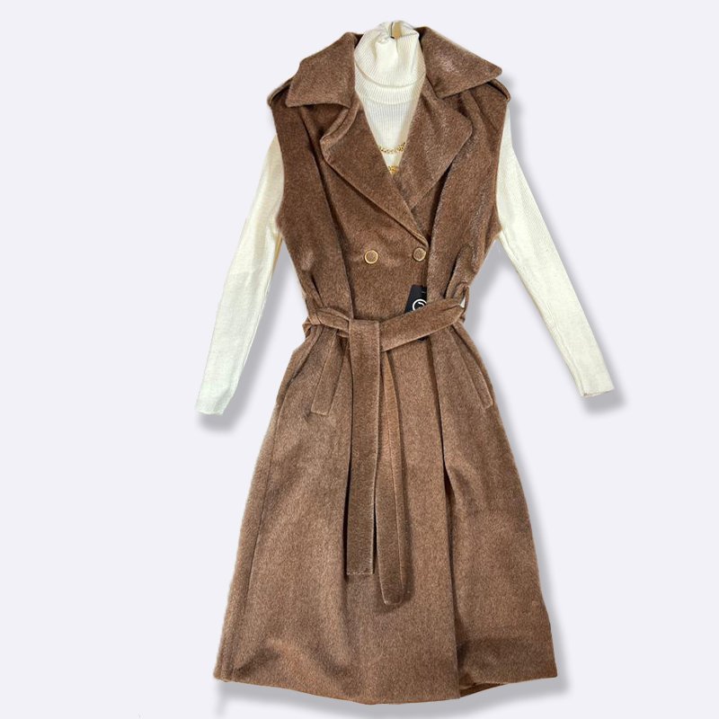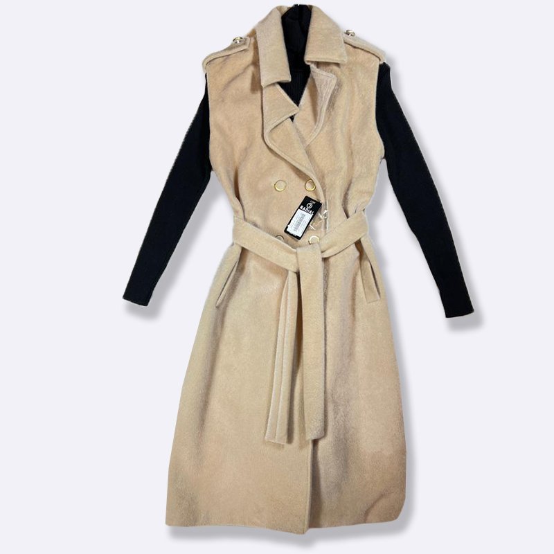 تألقي بأناقة مع هذا الطقم العصري الذي يجمع بين معطف الترنش الأنيق بدون أكمام وتوب بياقة عالية. تصميم فريد يضفي لمسة عصرية على إطلالتك، مثالي لفصلي الخريف والشتاء.