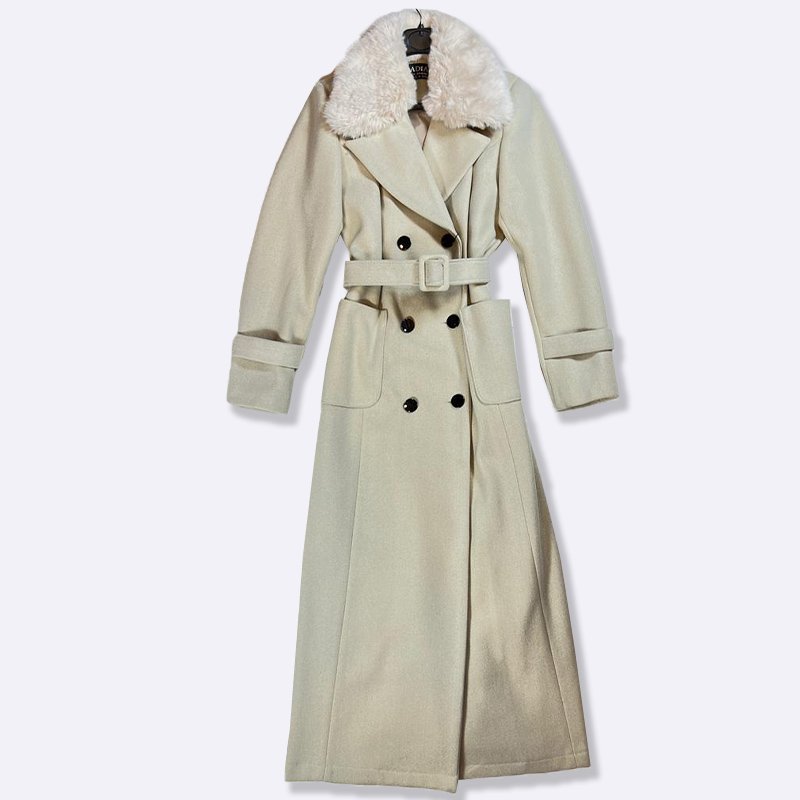 تألقي بأناقة لا مثيل لها مع هذا المعطف الماكسي الفاخر. يتميز بياقة من الفرو الصناعي وحزام أنيق لإطلالة عصرية وجذابة في فصل الشتاء.