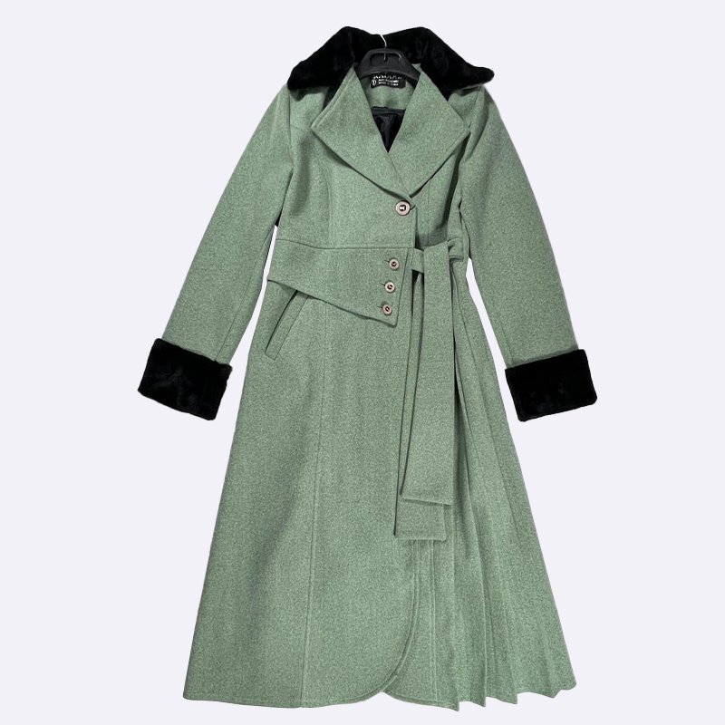 استقبلي الشتاء بأناقة مع هذا المعطف الماكسي الفاخر. تصميم أنيق بحزام وحواف من الفرو يضفي لمسة من الدفء والجمال على إطلالتك.