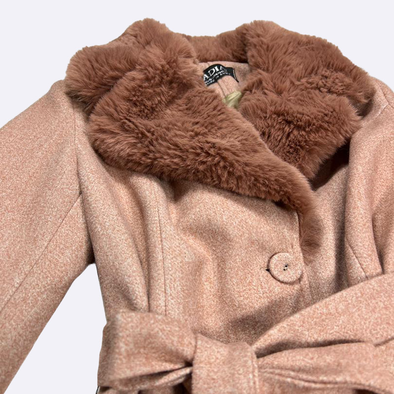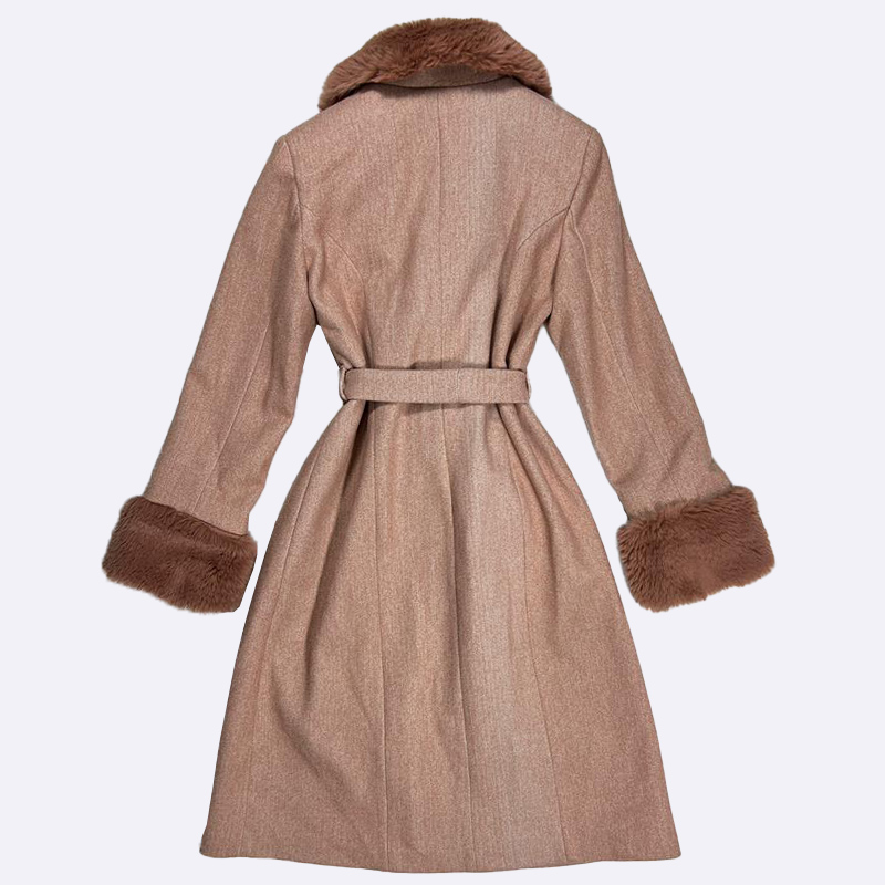 Vintage Charm: Faux Fur Trim Wool Blend Coat