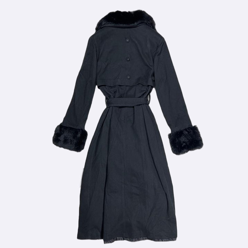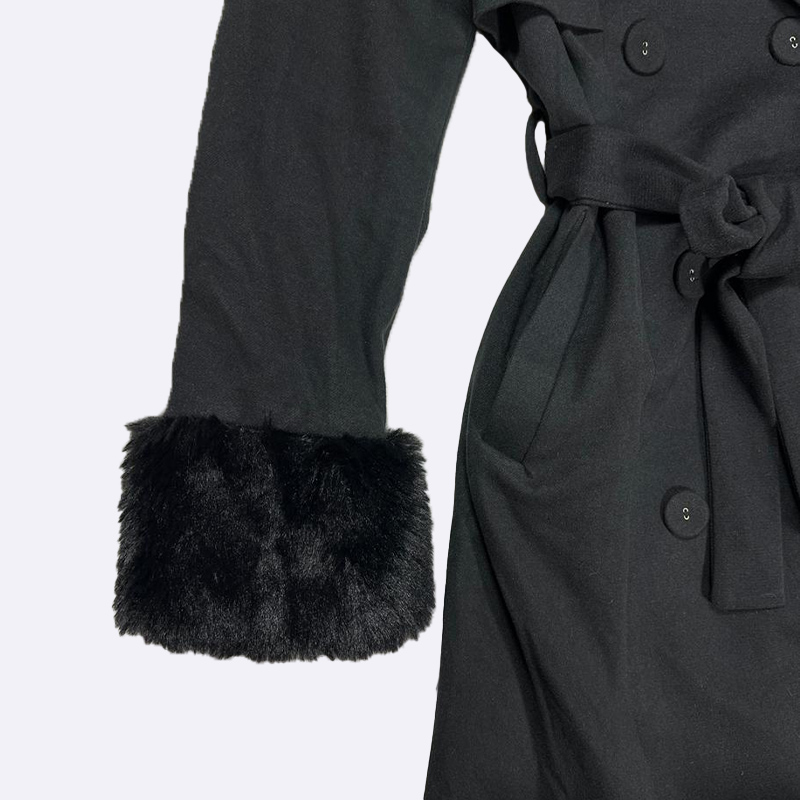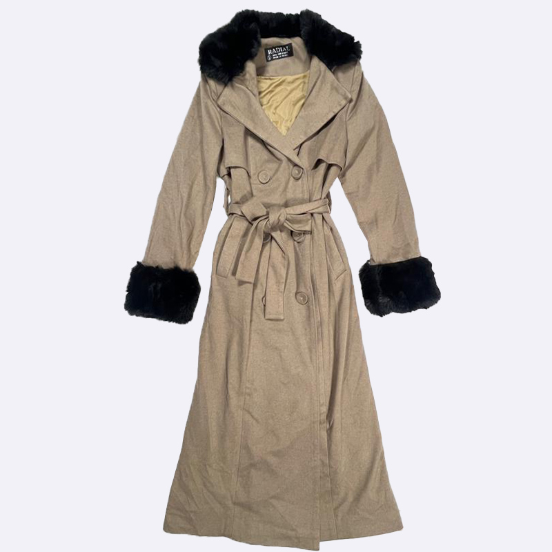 تألقي بأناقة هذا الشتاء مع معطف الترنش الأنيق بياقة وأكمام من الفرو الصناعي الفاخر. تصميم عصري يضفي لمسة من الدفء والجاذبية على إطلالتك.