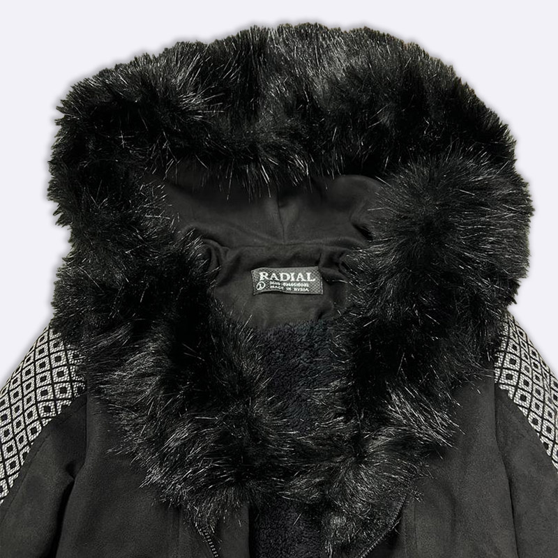 Radial Black Faux Fur Hooded Longline Coat