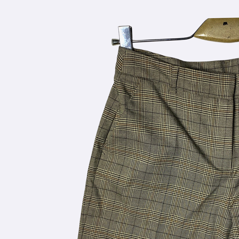بنطلون نسائي بقصة واسعة، يتميز بطول قصير (Cropped) ونقشة كاروهات (Plaid) كلاسيكية، مثالي لإطلالة رسمية أو عصرية.