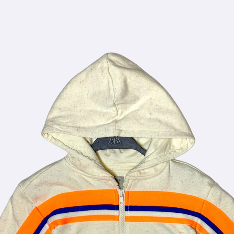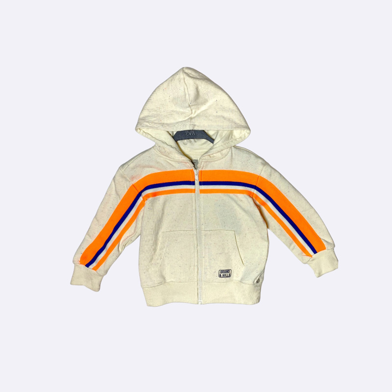 طقم رياضي ولادي أنيق من OVS، يتكوّن من هودي بسحاب مع خطوط ملونة على الأكمام، وبنطال رياضي مريح بخصر مطاطي. خامة ناعمة مناسبة للارتداء اليومي والحركة.