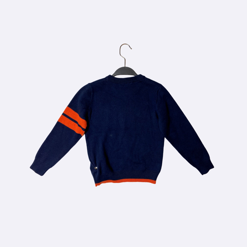 كنزة ولادي أنيقة من Primark بلون كحلي مع خطين برتقالي على الكم لمظهر عصري. قماش ناعم ومريح مناسب للبس اليومي، وقصة عملية تحافظ على الدفء مع لمسة ستايل جميلة للأطفال.
