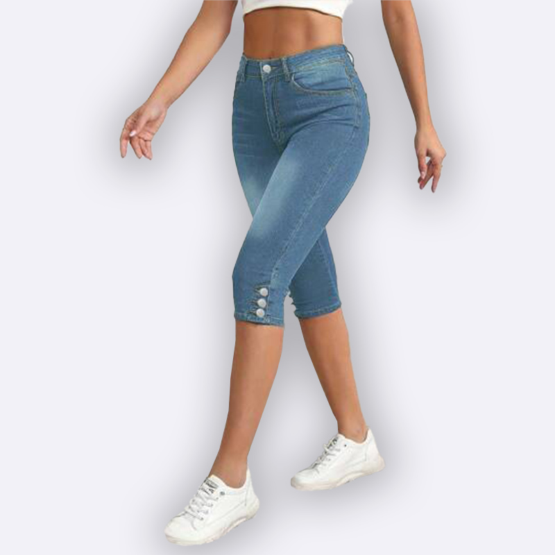 تألقي بإطلالة عصرية مع طقم الدينم الكابري الأنيق بتفاصيل الأزرار الجذابة. تصميم مريح وعصري يضفي لمسة من الأناقة على مظهرك اليومي.