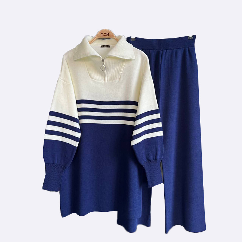 طقم تريكو نسائي أنيق مصنوع من قماش تركي مكفول عالي الجودة، يتكوّن من كنزة طويلة بطول 90 سم مع بنطال مريح. تصميم عصري بخطوط جذابة، دافئ وناعم، مناسب للإطلالات اليومية في موسم الخريف والشتاء.