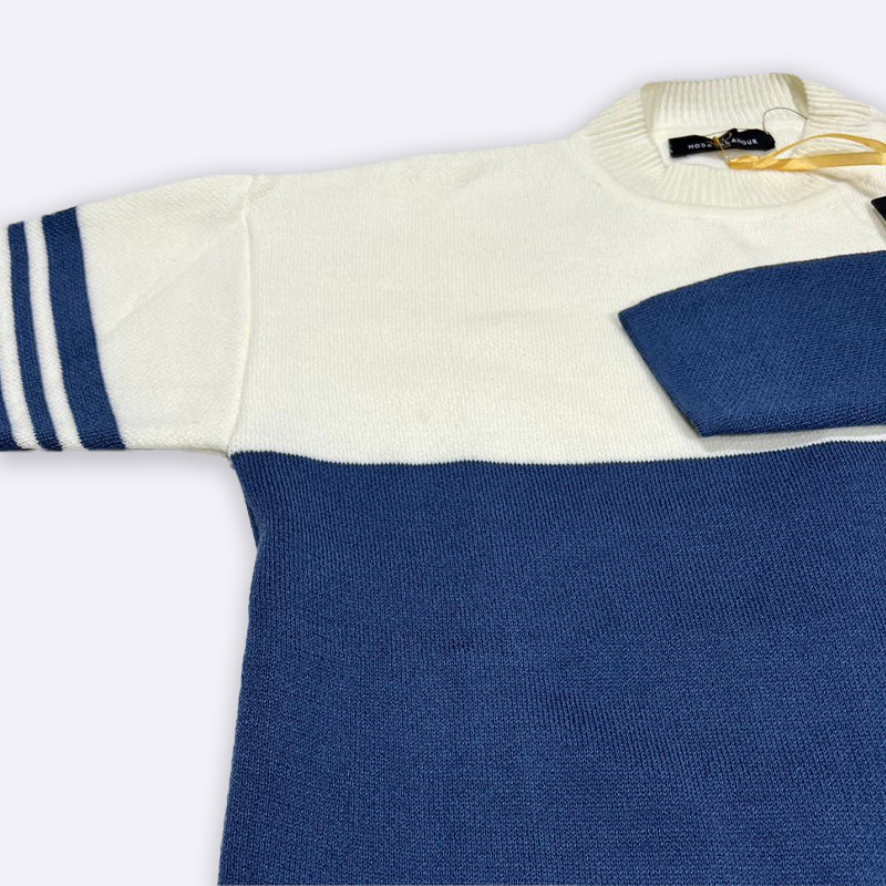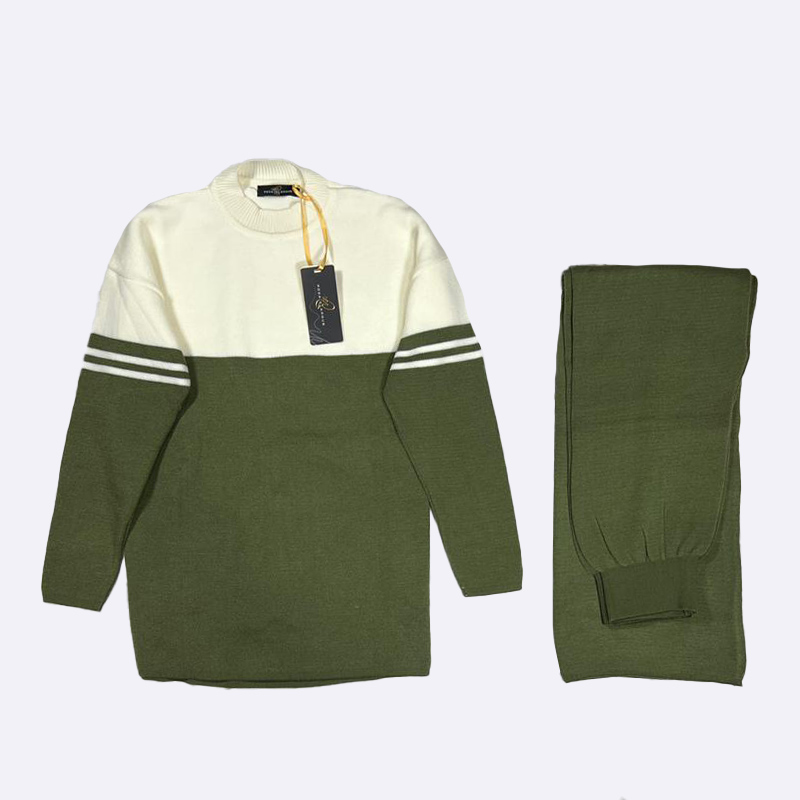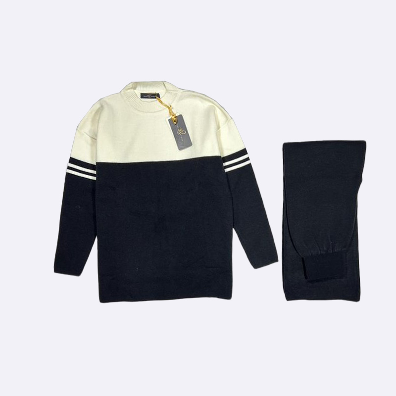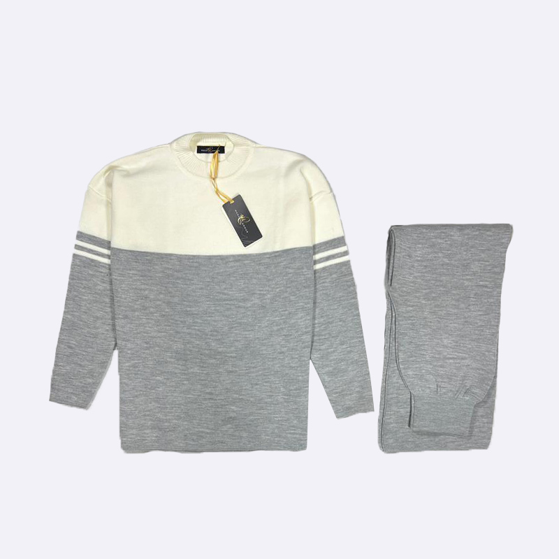 طقم بجامة قطعتين من التريكو الناعم، يتميز بتصاميم متنوعة تشمل تطريزات خفيفة على الياقة أو نظام الألوان المزدوجة (Two-tone) لإطلالة منزلية دافئة وأنيقة.