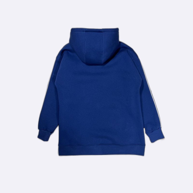 طقم رياضي مريح من القطن الفليس ببطانة دافئة، يتكون من هودي بسحاب كامل وجيوب أمامية مع بنطال مطابق، مزين بشعار علامة تجارية.