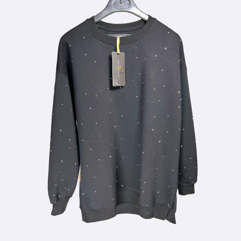 تألقي بإطلالة عصرية مع هذا السويت شيرت الفضفاض والمزين بالنجوم. تصميم مريح وأنيق يضفي لمسة جذابة على مظهرك اليومي.