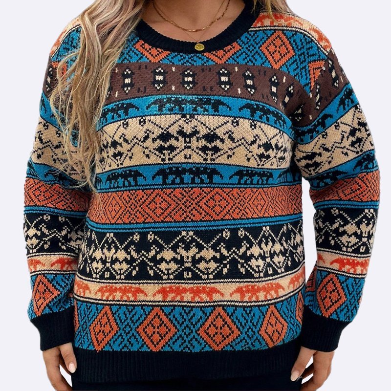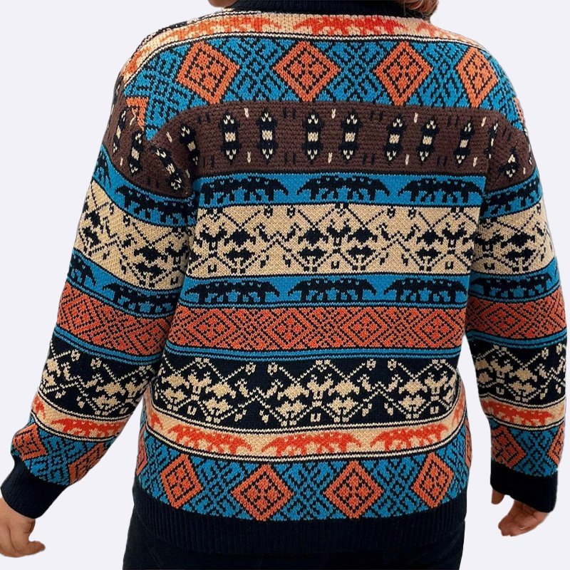 أضيفي لمسة عصرية إلى خزانتك مع هذه الكنزة المحبوكة بنقشة ريترو. تصميم فريد ومريح يجعلكِ محط الأنظار.