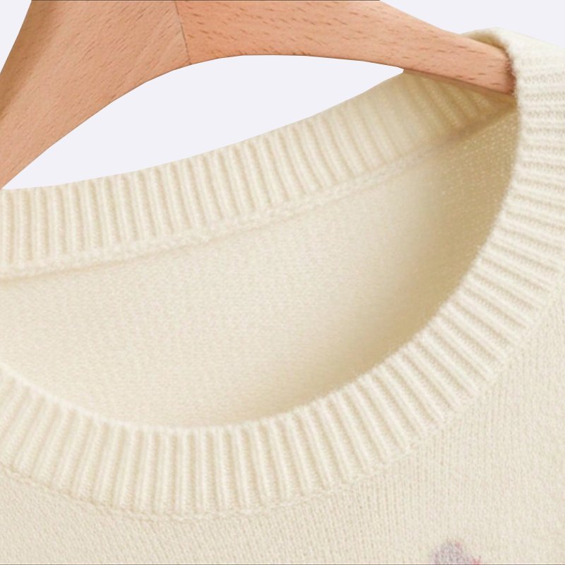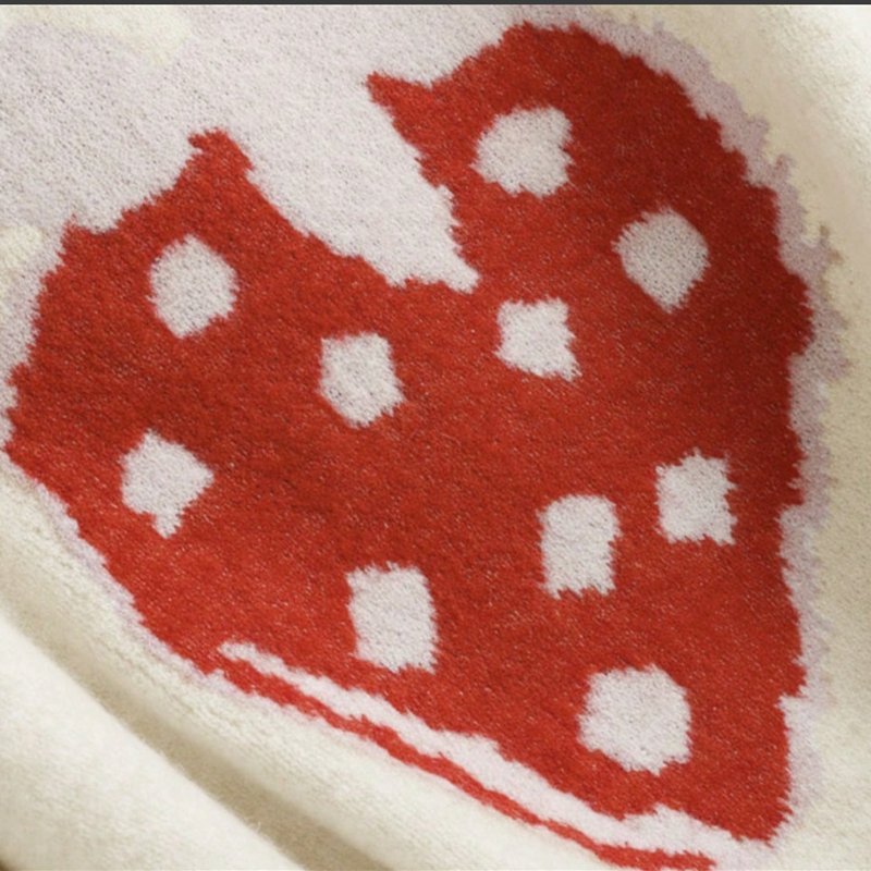 أضيفي لمسة من الحلاوة إلى خزانتك مع هذه الكنزة التريكو الرائعة بتصميم الفراولة. مثالية لإطلالة عصرية ومريحة.