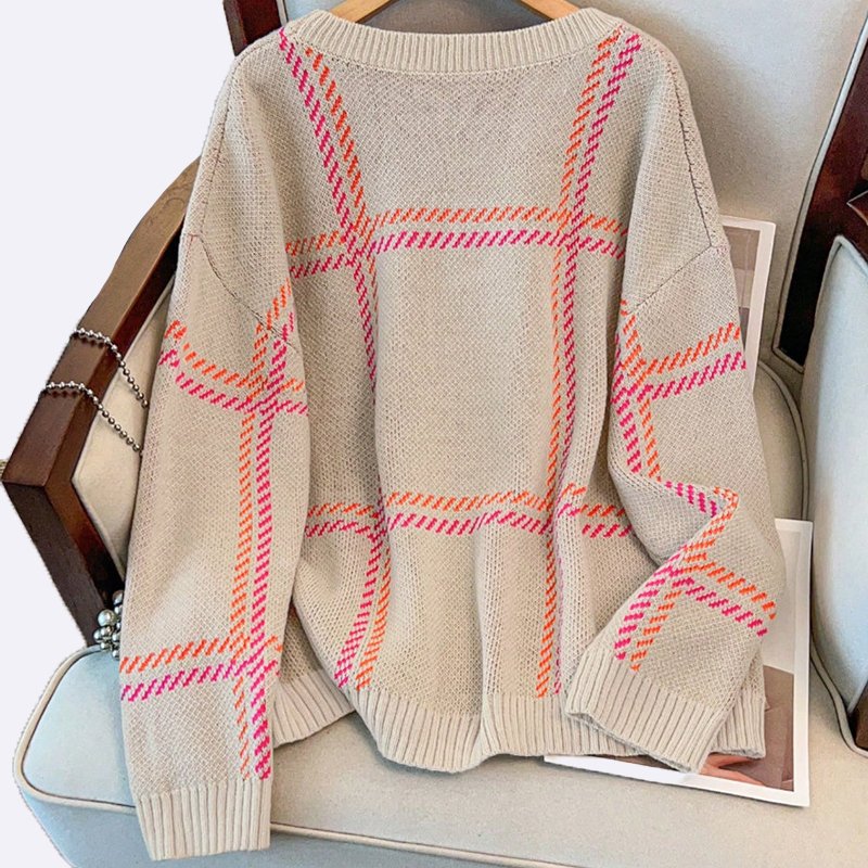 أضيفي لمسة من الأناقة إلى خزانة ملابسك مع هذه الكنزة المحبوكة بنقشة مربعات. تصميم عصري ومريح يجعله الخيار الأمثل لإطلالة يومية أنيقة.