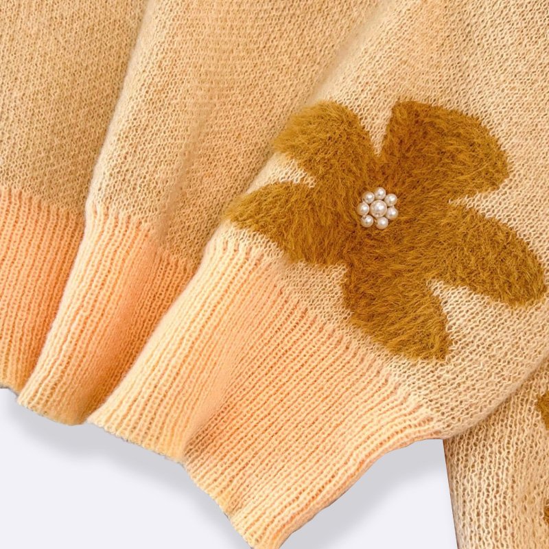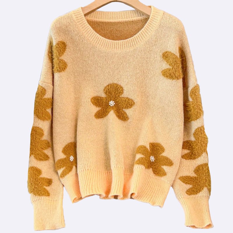 Floral Appliqué Knit Sweater