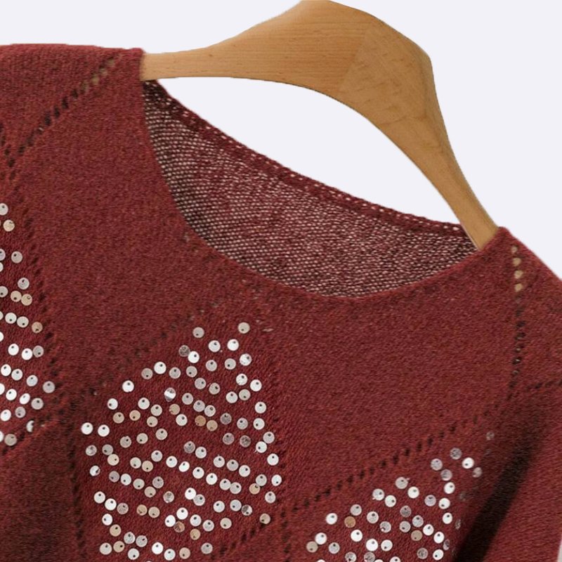تألقي بكنزة التريكو الماسية المزينة بالترتر الأنيقة. تصميم عصري ومريح يضفي لمسة جذابة على إطلالتك.
